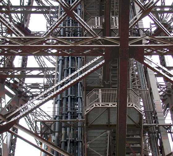 This is a view of the Eiffel tower usually not shown, but it delineates the remarkable construction of the Paris landmark. Gray and blue color way