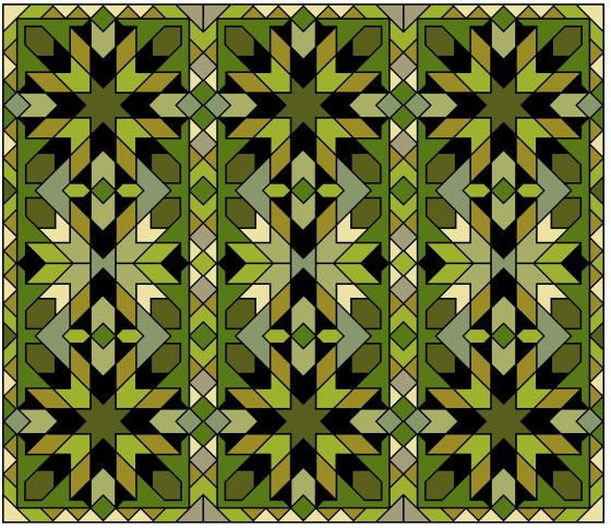 Morrocco Grid Green Gold Published on February 19, 2013 in Green ColorwayArt ImagesFull resolution (560 × 484) ← Previous Next → A geometric pattern based on Moroccan tile patterns. Variation of the Moroccan tile motif in shades of green and with some black and cream touches. Like Loading...